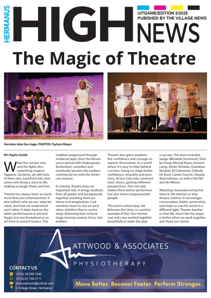 The High Times is available as a digital publication in 8-12 pages in full colour, with links to our advertisers webpages. Added to reporting by our learners on the activities that contribute to every Hermie’s overall school experience, are photos of our learners, by our learners.